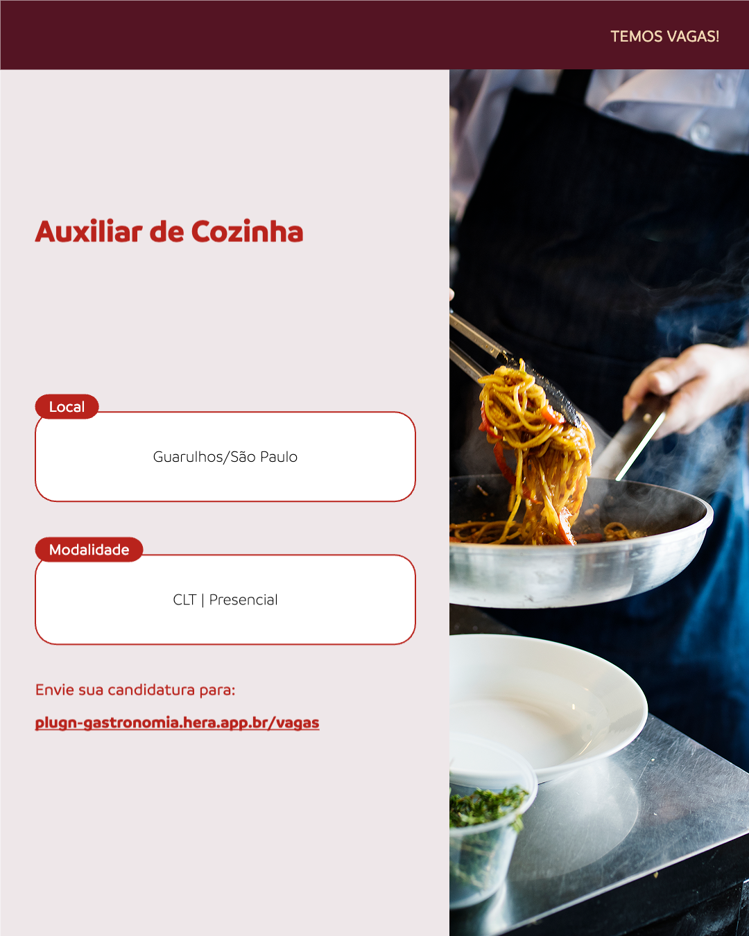 O auxiliar de cozinha será responsável por elaborar e finalizar pratos, fazer lanches, pizzas, controle de datas de vencimentos dos produtos, porcionar produtos, fazer sucos, drinks, organização e limpeza da cozinha e dos utensílios e louças.
